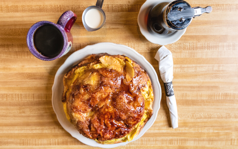 The Original Pancake House lives up to its name with its signature dish—the apple pancake. This creation combines the tartness of Granny Smith apples with an egg-based German batter that is dusted with cinnamon sugar, which bakes into a delicious glaze.