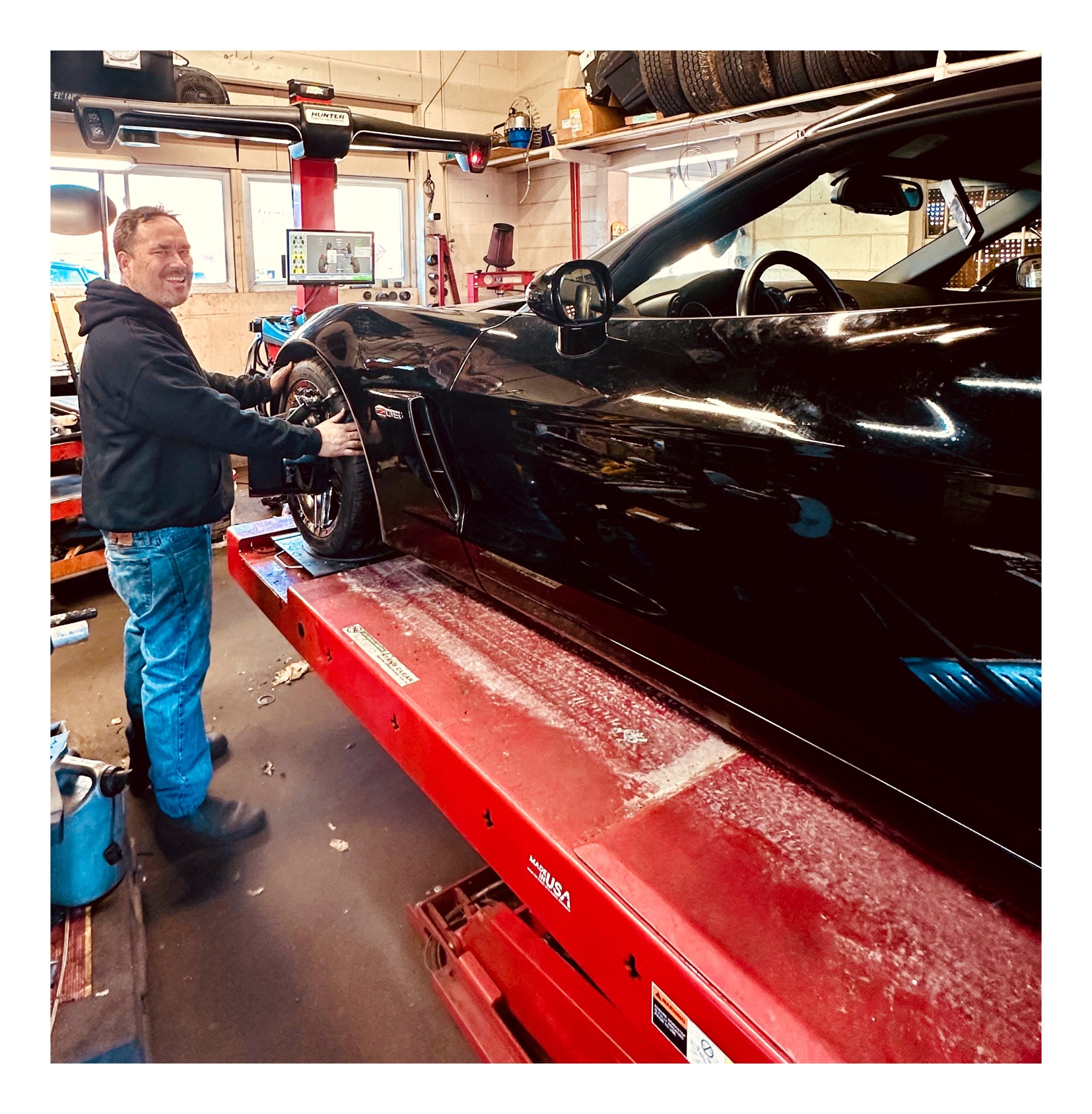 Man next to red car