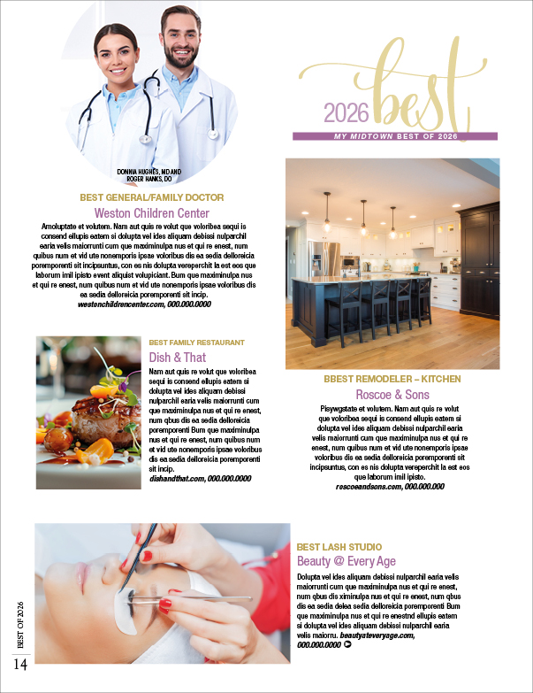 #2 Winner Spotlight Award –This package includes your 75-word featured winner spotlight both in the print issue of My Midtown as well as published on atlantabestmedia.com with SEO & dofollow link to your website. A Best of 2026 Winners Eblast will actively lead our readers to this winner web page. This package also includes an Official Best of 2026 Winner Ribbon exclusive to your business category for your marketing needs and a winner display board mailed directly to your business.